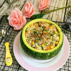 10.Then add rice and stir-fry for a few minutes