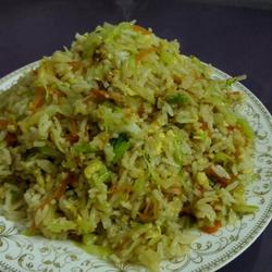 3. Heat oil in a pan, fry the eggs first, then pour in the ingredients from step 1 and add rice,