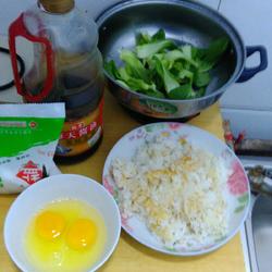 3.Put a little more oil in the pot, fry the remaining rice, add a little soy sauce, and add the eggs Mix the greens and it's ready to eat.