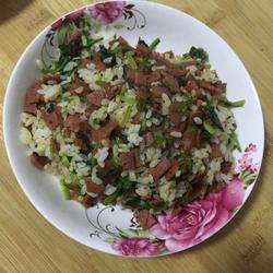 1. Wash the spinach and cut it into sections, defrost the bacon and cut it into cubes, and simmer the rice in advance.