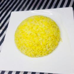 1.Put the rice in the container , add eggs and mix together until every grain of rice turns golden brown.