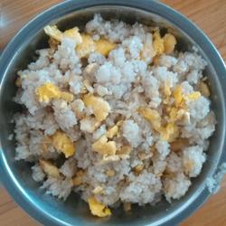3.Put the fried rice and eggs together and stir-fry.If you add some chopped green onion or one or two tomatoes or diced ham, the effect will be better.