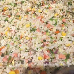 4.Finally pour in the rice Stir-fry evenly, add a little salt, chicken essence, pepper and chopped green onion, stir-fry evenly and serve!