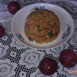 3.Put rice in the pot (rice is mixed with soy sauce first) Evenly stir-fry
