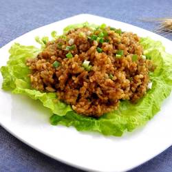 Both soy sauce and oyster sauce contain salt, so there is no salt added for seasoning; the amount of soy sauce is determined It improves the color of the finished product; it tastes better when wrapped in lettuce.