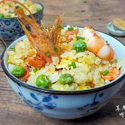 1. 8-10 fresh shrimps, 100g diced carrots, 100g peas, 1 salted duck egg, 2 eggs, overnight rice for 2 people.