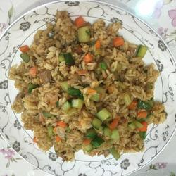 When frying the auxiliary ingredients, add carrots, diced meat, and finally diced cucumbers.Add them all in and stir-fry until the cucumbers wilt.It doesn't taste good and has no fragrance.