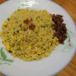 3.Put in the oil and stir-fry until the rice is added.Add the egg yolk and stir-fry over low heat.Add salt, wine and white pepper and take out the pan