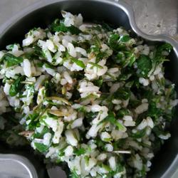 A handful of water chestnut leaves ( ) | A spoonful of rice ( ) |