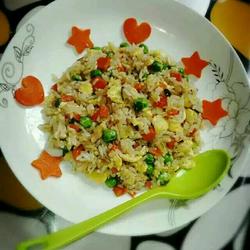4. Heat oil and fry rice, add eggs and vegetables, stir fry quickly, add light soy sauce, salt and chicken essence A little, season to taste and serve