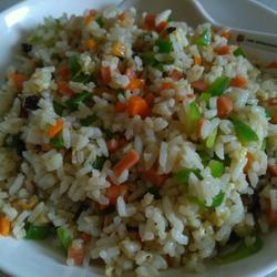 The rice should be kept neither dry nor wet.It is best to use rice from another meal.Use medium heat when stir-frying, otherwise it will burn easily