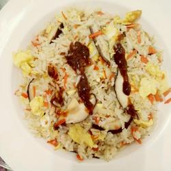 3. First fry the carrots in oil, scoop them out, pour in the egg liquid, stir-fry until they are medium cooked, then scoop out the oil, then add oil, stir-fry the leftover rice, when it is almost hot, add the mushrooms, eggs and carrots, stir well and scoop out.
