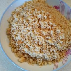 After the rice is cooked, use chopsticks to stir and take it out until it is not hot.Add in the eggs and stir, so that the rice can be evenly separated and will not stick to the pot when frying