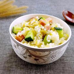 5.Add cucumber, ham sausage and mustard and stir-fry evenly