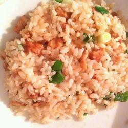 6.Use the remaining oil in the pot to add the prepared rice and stir-fry