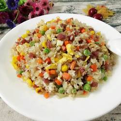 5. Heat the oil in the pot, add the sausage and stir-fry for a few times, then add the carrots , onions, green beans, corn and appropriate amount of salt and stir-fry until cooked.