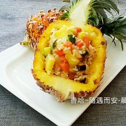 Do not break the shell when removing the pulp from the pineapple; pineapple juice is used for pickling Meat; this one is sweet and sour, the salt is just for the base taste, and the final seasoning should be determined according to your own taste.