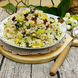 11. Finished product picture, the beautiful sausage fried rice is completed.