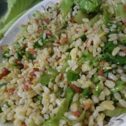 5.Pot for previously fried ham There is oil, so no need to add more oil.Pour in the rice grains coated with egg liquid and stir-fry