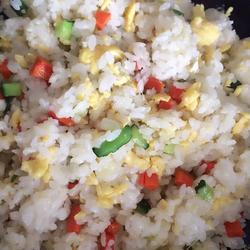 3.Put in oil and fry the eggs first and set aside.After frying the diced vegetables, add the rice and stir-fry repeatedly for three minutes.