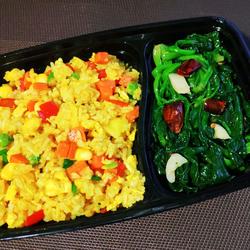 Baby spinach ( 1 box ) | Corn kernels, green beans (appropriate amount) |