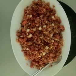2. Heat oil in a pan and wash it Add in the corn kernels and diced ham and stir-fry until fragrant.