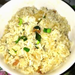3. Add rice, add salt and white pepper, stir-fry until rice Cut into granules, add garlic and serve