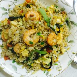 8.Put oil into the pot and add shrimp, green vegetables, carrots, Stir-fried corn kernels