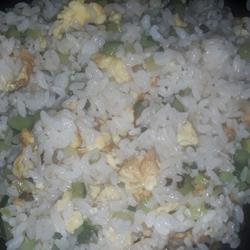 When sauteing the chopped green onions, saute the salt together to make the fried rice taste much better.