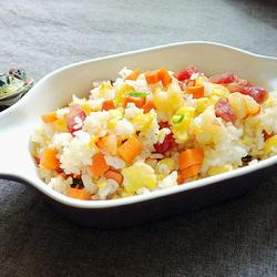 Overnight leftover rice ( appropriate amount ) | Sausage (appropriate amount) |
