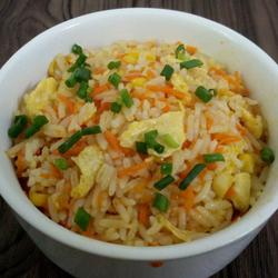 2.Beat the eggs, shred the carrots, remove the corn kernels, and cut the onions into chopped green onions