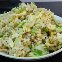 8.Put oil in the pot.When the oil is hot, turn to low heat, add rice and stir-fry.
