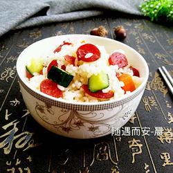 For this delicious fried rice, stir frequently when frying; It is best to use leftovers from the day before; the sausage itself already has flavor, and the final seasoning should be based on your own taste