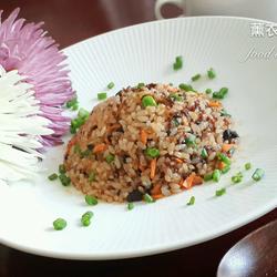 3.Add in the rice and stir-fry over low heat until evenly stirred, stir-fry thoroughly