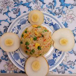 2. First fry the diced peas, pour them out, and then spread the eggs: add some water to make them soft and there are plenty of eggs, then add various diced vegetables, microwave them for a minute before cooking, so that they will fry better.Quick