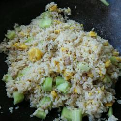 12. Fry out the minced meat, then add rice.After the rice is stir-fried, add eggs, season with salt and stir-fry again.