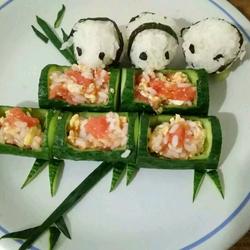 1.Cucumbers are made into bamboos, and seaweeds are made into panda eyes
