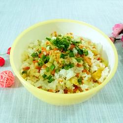 6. Turn to low heat and spread the rice, then turn to medium heat and add appropriate amount of salt.Just taste.