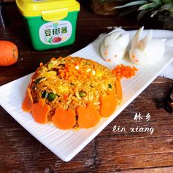 Be diligent and put the fried rice into the little white rabbit’s belly, so the children will like it more.