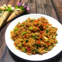 10. Add the mixed rice and stir-fry for about a minute.Fire