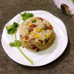 1.Cut the sausage, wash and prepare the corn kernels and peas, and prepare the rice