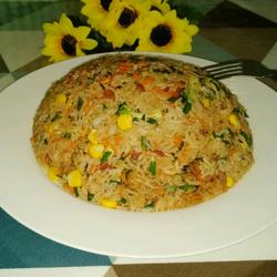 8.Pour the previously prepared sauce into the rice and stir-fry evenly before serving.