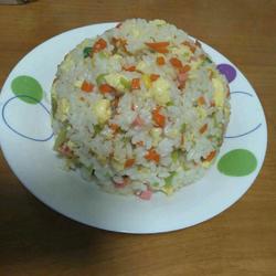 1.Cut carrots, green peppers, and ham into cubes and prepare them.Poke peas and corn kernels with boiling water and set aside
