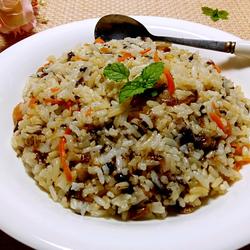9.Finally add the white rice over low heat and stir evenly.