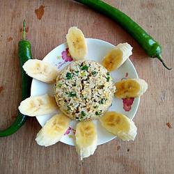 6.Put a small amount of oil in the pot, pour in picture 2, stir-fry over low heat for a few seconds, then add rice, add some water, simmer for two minutes, continue to stir-fry over low heat, add appropriate amount of oyster sauce and salt halfway through.