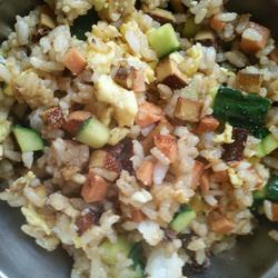 5.Last down Add the beaten rice, stir-fry the fried eggs, and stir evenly