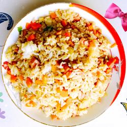 4.Add rice and continue to stir-fry.Fry the rice and ingredients until evenly heated.