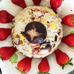 1. Prepare the main ingredients.Overnight rice, mushrooms, ham, eggs