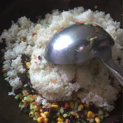 If you don't break the eggs, the scrambled eggs will be very scattered and even.Remember to fry rice over medium heat and stir constantly