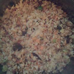 9.Crack in two eggs.In the rice, I later saw that the color was light, so I added two more